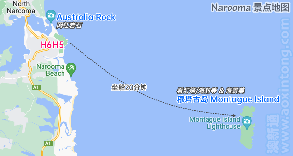 位于 Narooma 东南方向的一个小海岛(约9公里),坐船约20分钟即到。