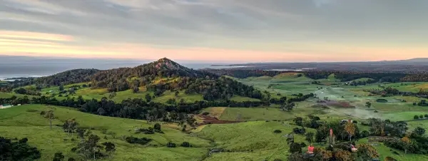 一座森林覆盖的老火山,穿过绿色山谷的乡间小路,途经大树和巨型花岗岩,行至顶峰,可以俯瞰美丽的海岸线。
