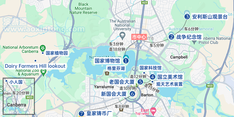 交通:距离堪培拉市中心约20分钟车程(约15公里),自驾前往,或市中心 Uber 约30澳元