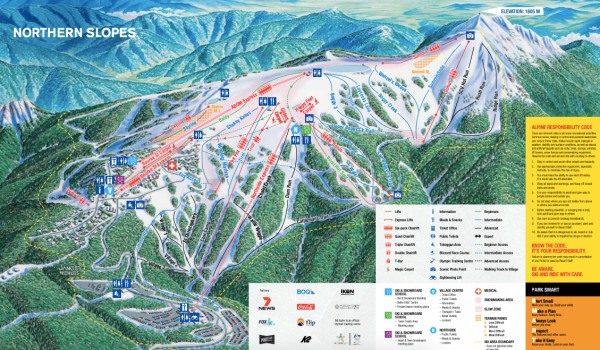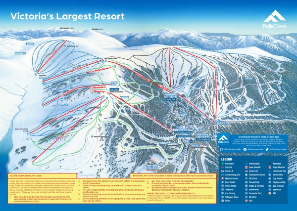 以 Falls Creek 滑雪场为例:初级绿道/中级蓝道/高级黑道