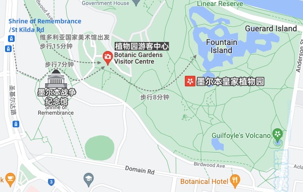 ‣ 乘坐电车到 Shrine of Remembrance/St Kilda Rd 下,刷 myki 卡 5.5澳元,再步行约7分钟到植物园游客中心