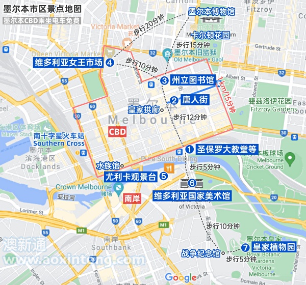 ‣ 墨尔本市区景点,集中在CBD,步行 + 电车就可以(CBD乘坐电车免费)
