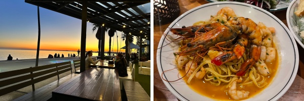 主要位置好,就在海边,欣赏日落的好选择,味道口碑不一