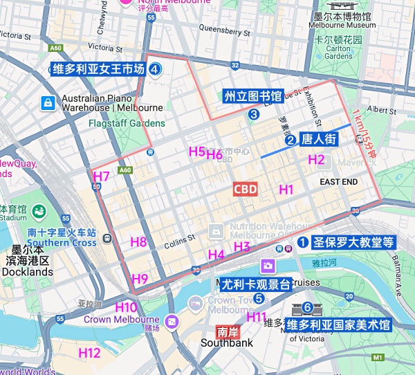 墨尔本景点集中在 CBD 和南岸,推荐住在这2个区域: