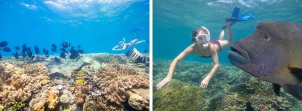 费用:浮潜 265澳元;浮潜+1次深潜 345澳元;浮潜+10分钟直升飞机 395澳元