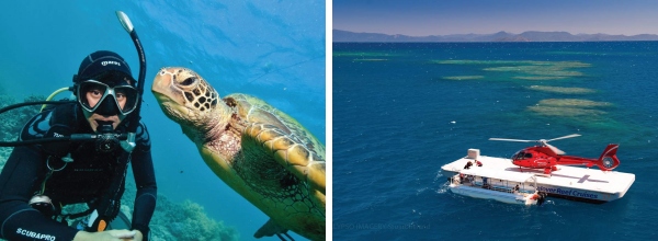 费用:324澳元(包含浮潜和海上平台设施);+10分钟直升飞机 505澳元/人;+深潜 449澳元起/人