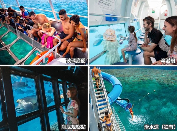 ‣ 海上平台设施:玻璃底船/半潜艇/海底观察站,还有大堡礁唯一的滑水道
