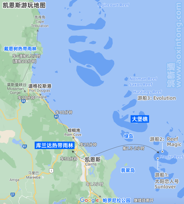 ‣ 大堡礁出海一日游,是凯恩斯和艾尔利海滩/汉密尔顿岛出发都有的项目,到达的大堡礁海域不同而已。