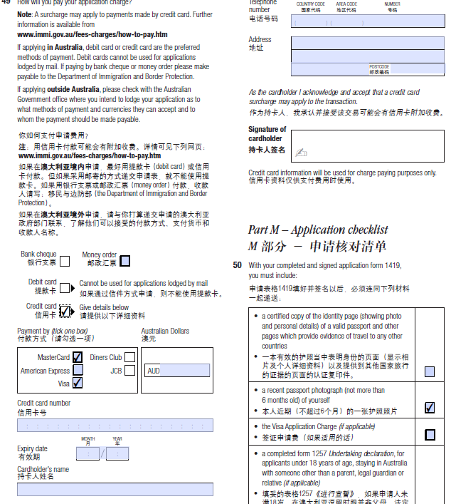 25项,“不跟你一起去澳大利亚的亲人”,我其实是有APEC商务卡的,那我算不同行的人员,我老公的1419表这项:”当你在澳大利亚的时候他们的地址“这项我可以不填吗?因为我其实也是会一起去的呢,只是不申请签证而已。