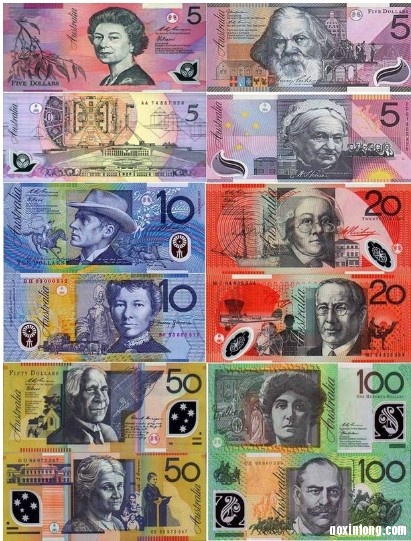 澳元是澳大利亚联邦的法定货币,目前澳大利亚流通的有5、10、20、50、100元面额的纸币