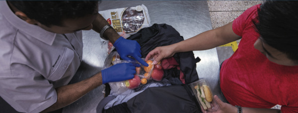 入境检查需要提供入境旅客登记卡(简称入境卡)。入境旅客登记卡是一份具有法律效应的文件。 如果携有任何食品,植物材料或动物产品,就必须在相应的问题后面对“是” (YES)一栏打叉,进行申报。如果有不想申报的违禁物品,也可以把它们弃置在机场内的检疫箱内。把申报的物品交给检疫官检查。没有问题的将返回到你手中。违禁的物品将被扣留并销毁。构成疾病风险或含有昆虫或幼虫的任何物品将被没收。