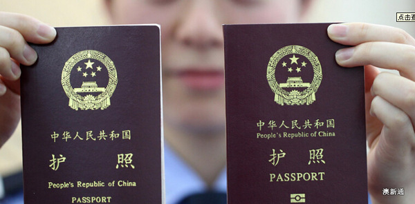 左边是普通护照,右边是电子护照,电子护照封面有小相机的标志,往下看