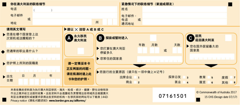 下载:澳洲入境卡中文版PDF;澳洲入境卡英文版PDF 点击:官网