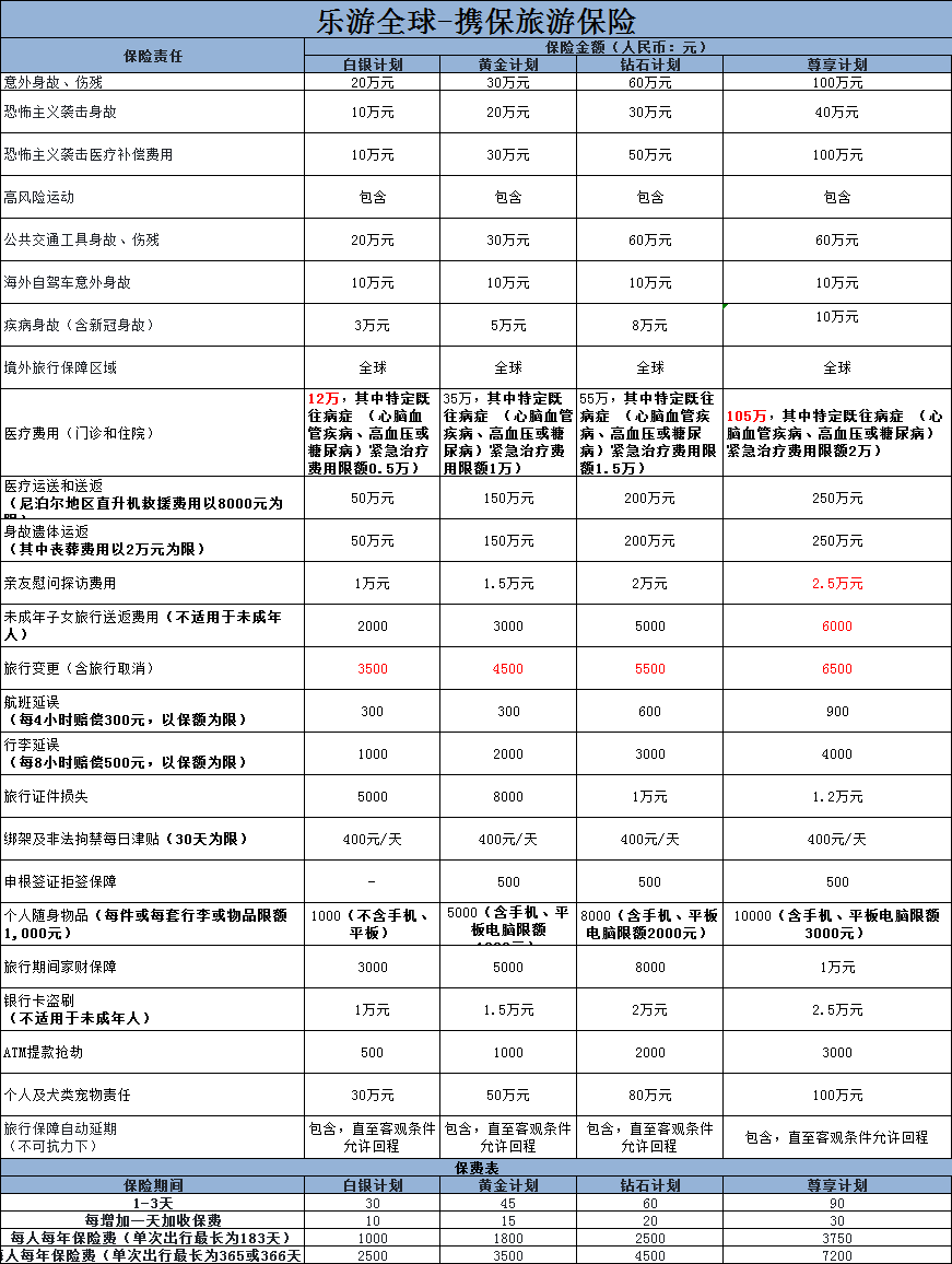 2. 保险生效时间 & 保障期:购买保险日期以从中国出发和落地中国的日期为准,涵盖整个行程