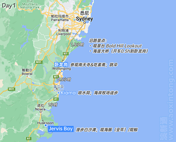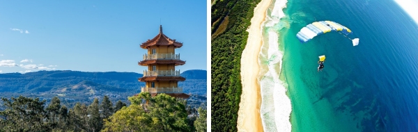 第2站:卧龙岗 Wollongong(参观南天寺&吃素斋,可停留1-2小时;玩海岸 跳伞,留出2小时;打卡沿路景点:观景台 Bald Hill Lookout 和 海崖大桥 Sea Cliff Bridge,可各停留半小时)