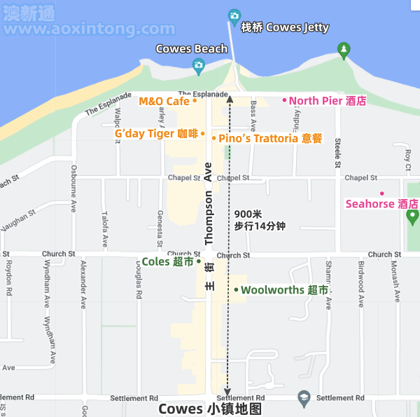 这里目的地定位:菲利普岛商业/生活区 Cowes 小镇。