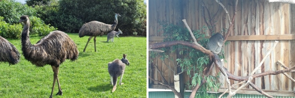 园区占地60英亩,有100多种澳洲本土动物。比如最有代表性的袋鼠、考拉、鸸鹋、塔斯马尼亚恶魔、袋熊等。
