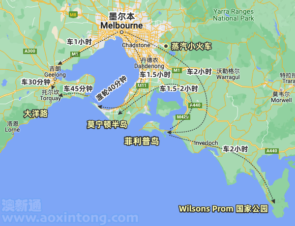 周边自驾向西:+ 莫宁顿半岛(1天)+ 大洋路(2-3天,托尔坎为大洋路起点)