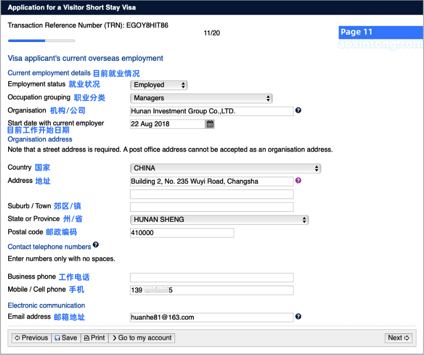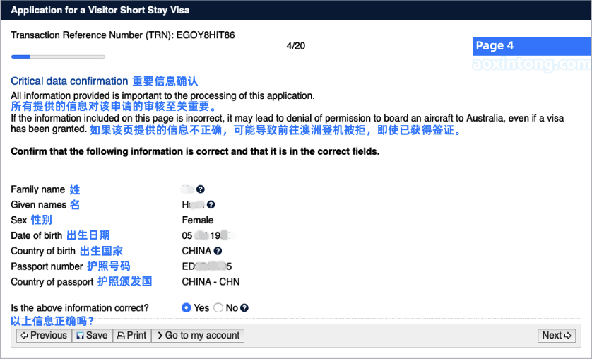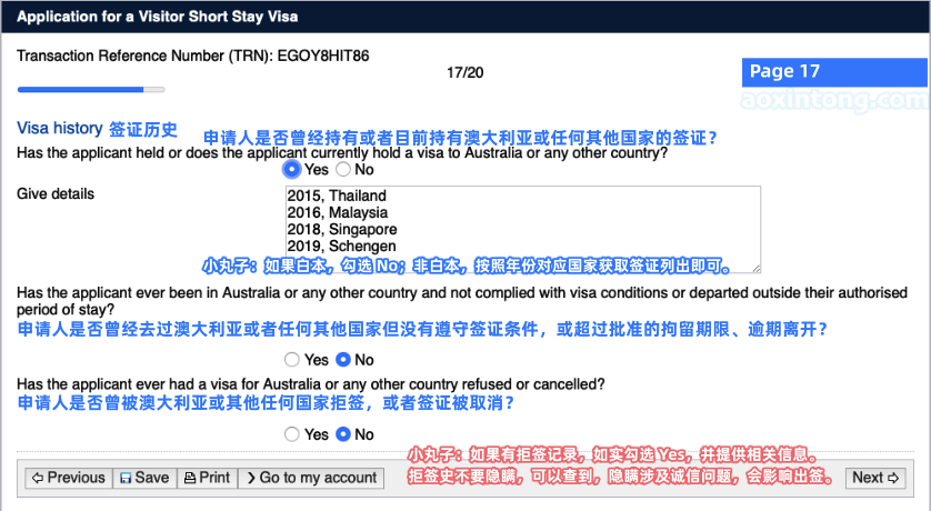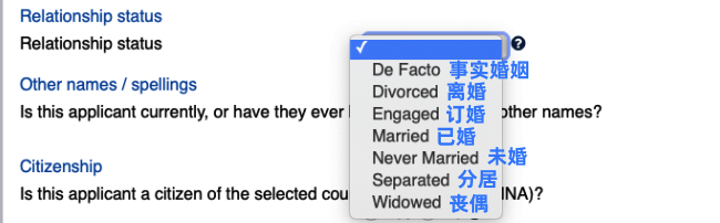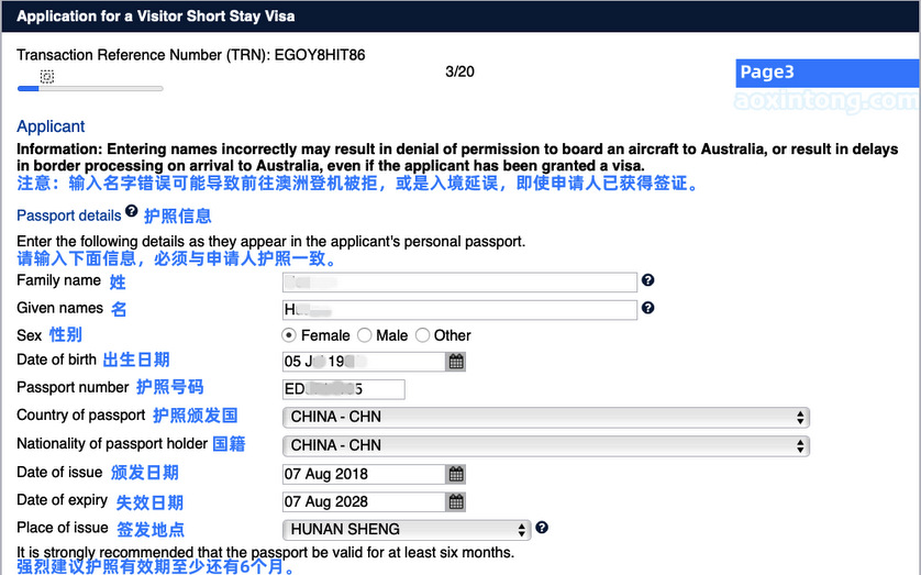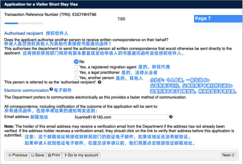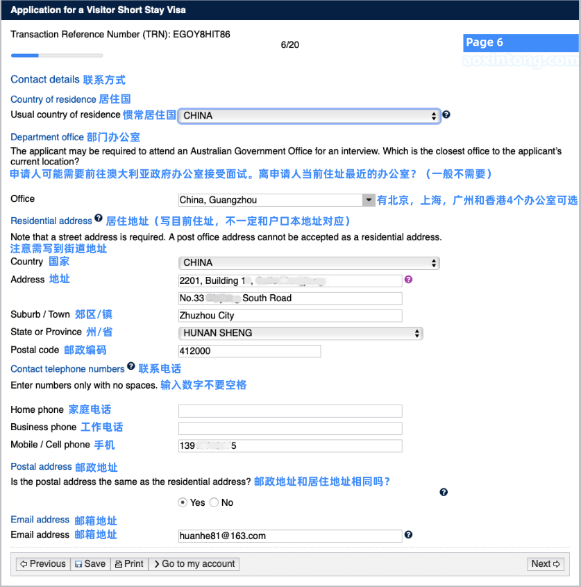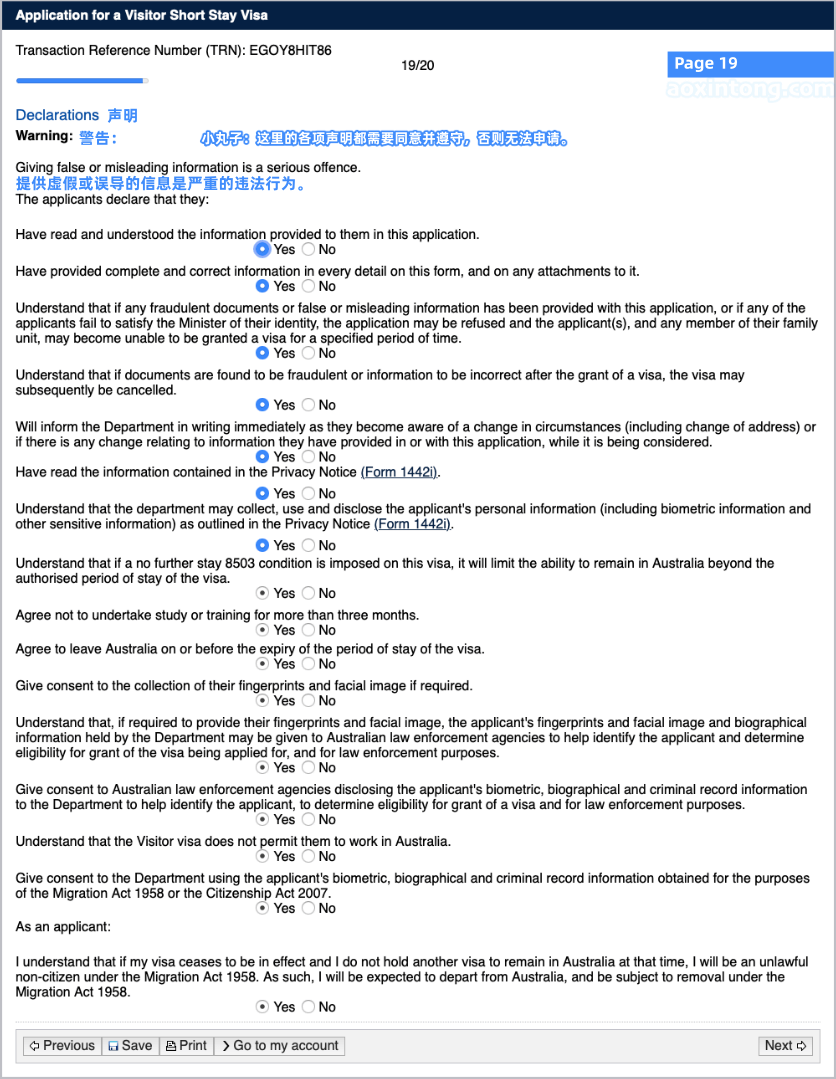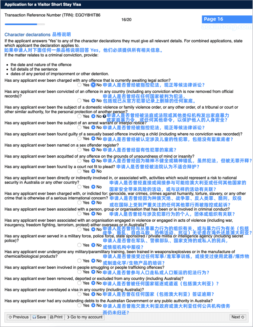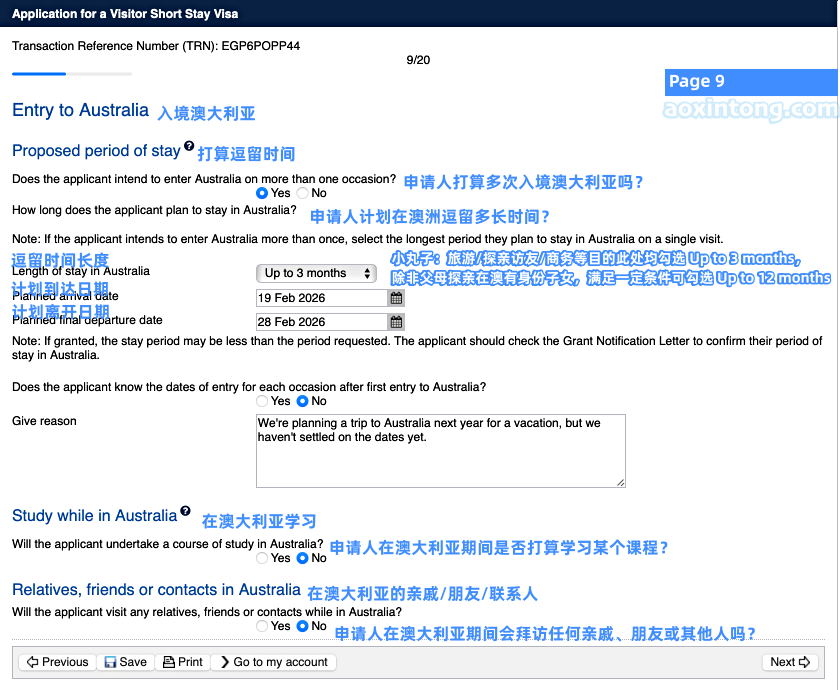 填写逗留时间,是否在澳大利亚学习,以及在澳大利亚的亲戚,朋友和联系人