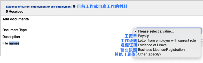 不能中文。文件名字只能由数字0-9和大小写英文字母 A-Z,以及 – 和 _ 组成。 Description 可以保持和 Document Type 或者 File names 一致,也可以另取。