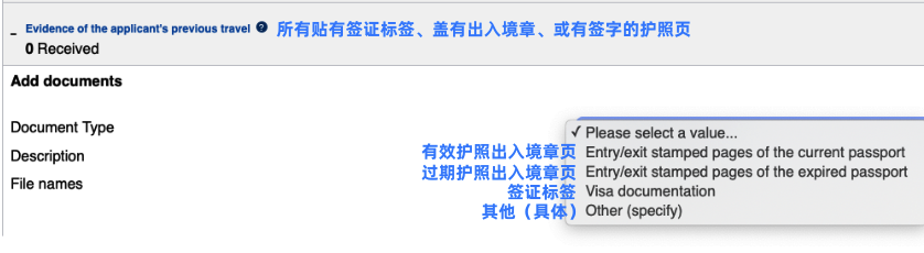 Q:已填写P17签证历史的情况下,不出现 Evidence of the applicant's previous travel 项,怎么办?
