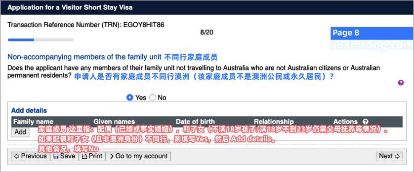 Q:父母探亲在澳子女,子女满18岁且是澳洲公民或永久居民,可申请18个月/3年/5年多次签,网申如何填写相关信息?