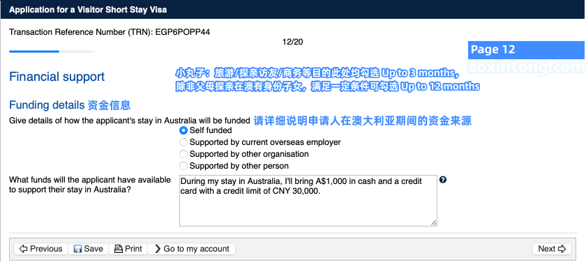 旅游,一般探亲访友,商务目的,此处均勾选 Up to 3 months(不超过3个月),父母探亲在澳有身份子女满足条件可申请勾选 Up to 12 months。注意普通旅游目的,要勾选Up to 3 months,超过3个月会要求体检!!