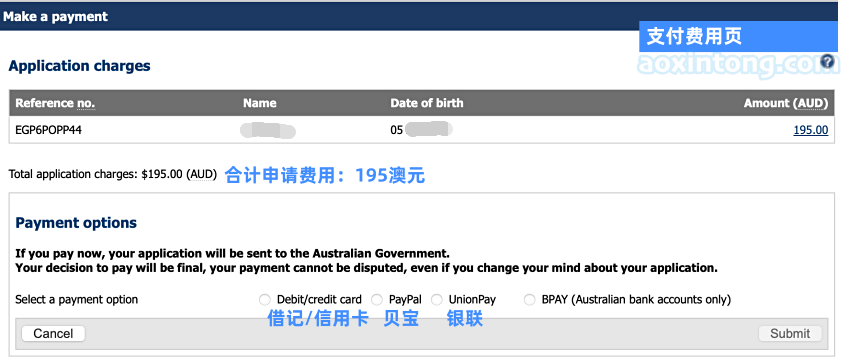 支付方式:借记/信用卡,贝宝或银联卡,以及只限于澳洲银行账户的BPAY。