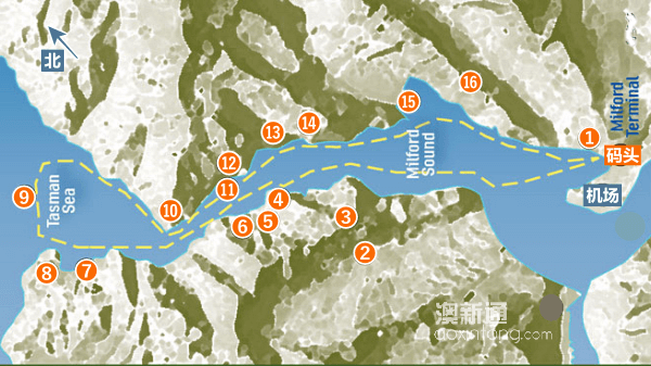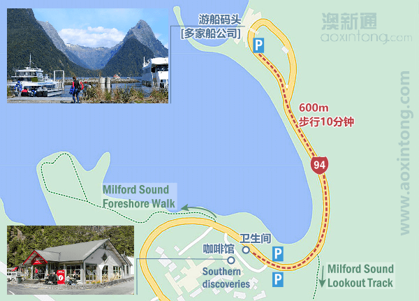 这里是米尔福尔峡湾唯一安全的天然港湾。有水下观测台,可以看到很多海底生物。