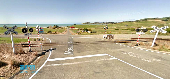 位于Hampden-Palmerston Rd 和 Moeraki Boulders Rd 丁字路口交接处
