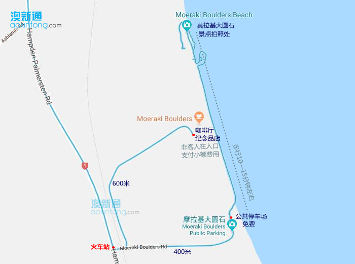 - 正规入口Moeraki Boulders(咖啡礼品店)