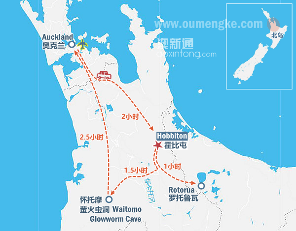 霍比屯位于奥克兰和罗托鲁瓦之间
