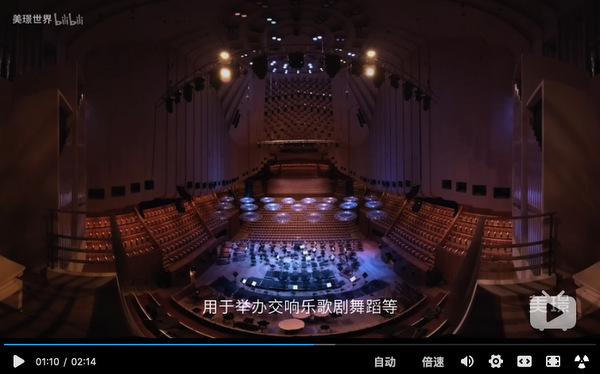 介绍悉尼歌剧院,下图为歌剧院最一大房间:音乐厅Concert Hall