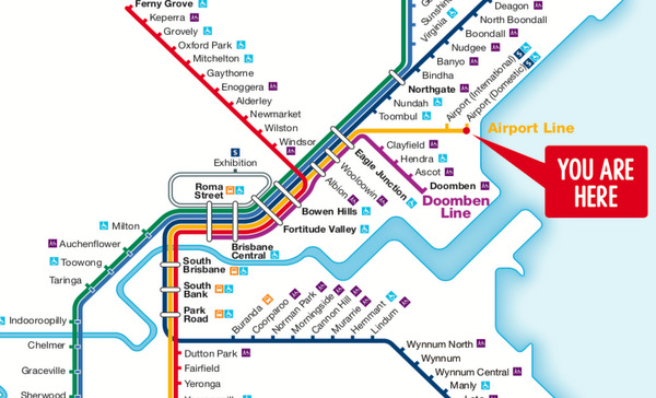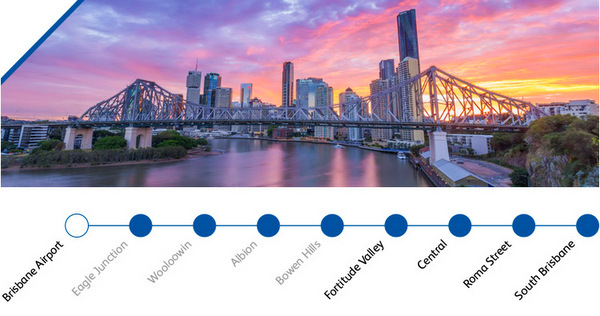 布里斯班市区主要站点:中央车程Central,罗马车站Roma Street,南布里斯班South Brisbane