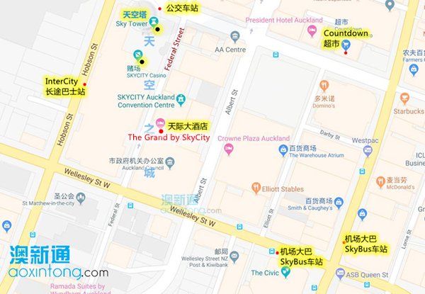 车站:Sky City Bus Terminal, 102 Hobson St, Auckland