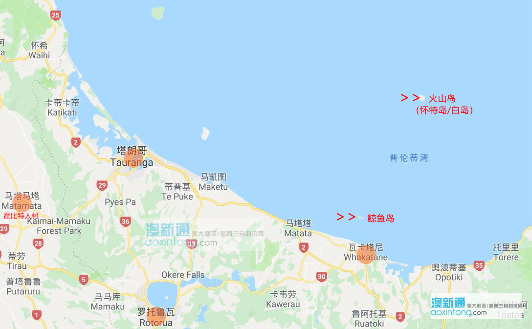 无论船游或飞机游,上岛或不上岛,游览火山岛和鲸鱼岛从丰盛湾东部小镇瓦卡塔尼Whakatane出发最为方便,因为路程短,价格也会比其他城镇出发的便宜。因此建议如果参加活动,先抵达瓦卡塔尼。