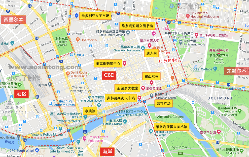 斯旺斯通街贯穿墨尔本CBD,从南边的联邦广场,经过购物中心,唐人街,到维多利亚州立图书馆,再一直往北出了CBD