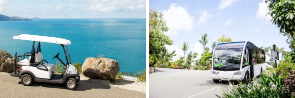 ‣ 最方便是 高尔夫球车 Buggy 代步,费用24小时135澳元,猫眼海滩酒店区有租车中心(8/9am-5pm,建议提前预订,预定好线下付款,须提供驾照,可租用儿童座椅)