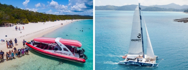 从汉密尔顿岛出发,乘坐双体船 Cruise Whitsundays 半小时就能抵达白天堂沙滩