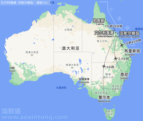 汉密尔顿岛和艾尔利海滩,由渡轮连接,船程约1小时。