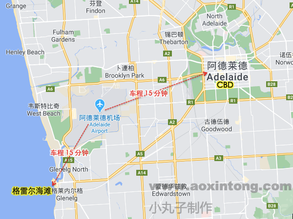 阿德莱德机场距离市中心约6公里,距离格雷尔海滩约8公里,车程差不多都是15分钟