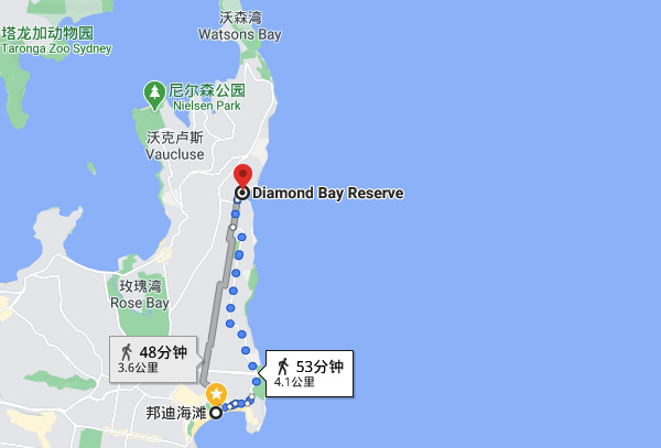 地图:邦迪海滩和钻石湾