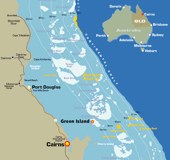 凯恩斯出发,主要有4个海岛:绿岛Green Island,翡翠岛Fitzroy Island, Michaelmas Cay和Frankland Islands。