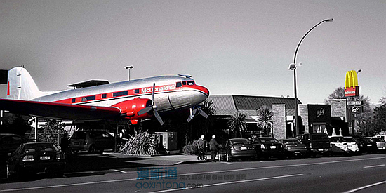 由一架真飞机改造的麦当劳餐厅, 飞机内有座位供用餐使用