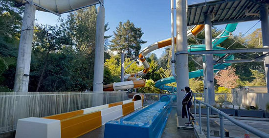 2个水滑道(城堡滑道和鲨鱼滑道),4个私人矿泉池