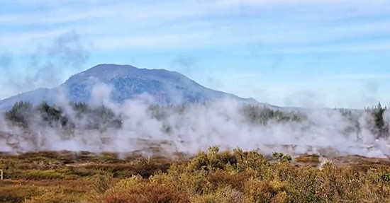 这里是一片宽阔的火山口地热区,地表到处冒着热蒸汽