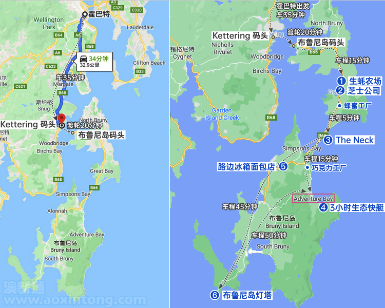 ‣ 自驾:霍巴特 - Kettering Ferry Terminal 车程 约35分钟