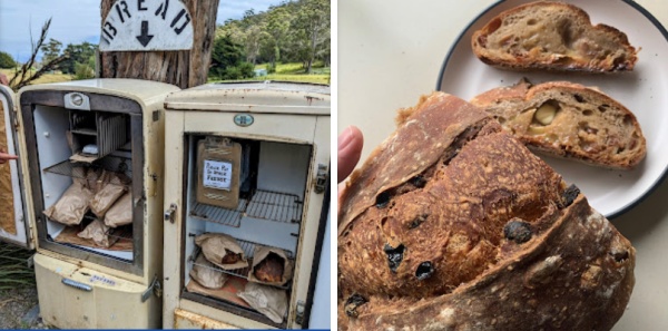 好吃的柴烧面包,塞满复古冰箱,就在路边。投放现金自助购买,8-10澳元/个。运气好,还能吃到热乎的。