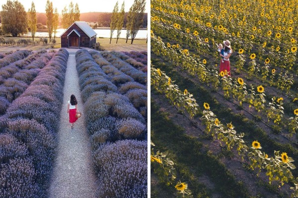 背靠森林,湖畔是大片的薰衣草花田,还种有向日葵花田。