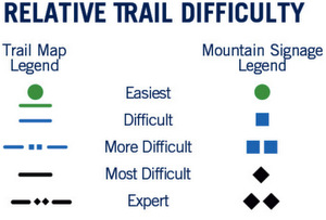 大的滑雪场会更多细分,下图是 Perisher 滑雪道分级: